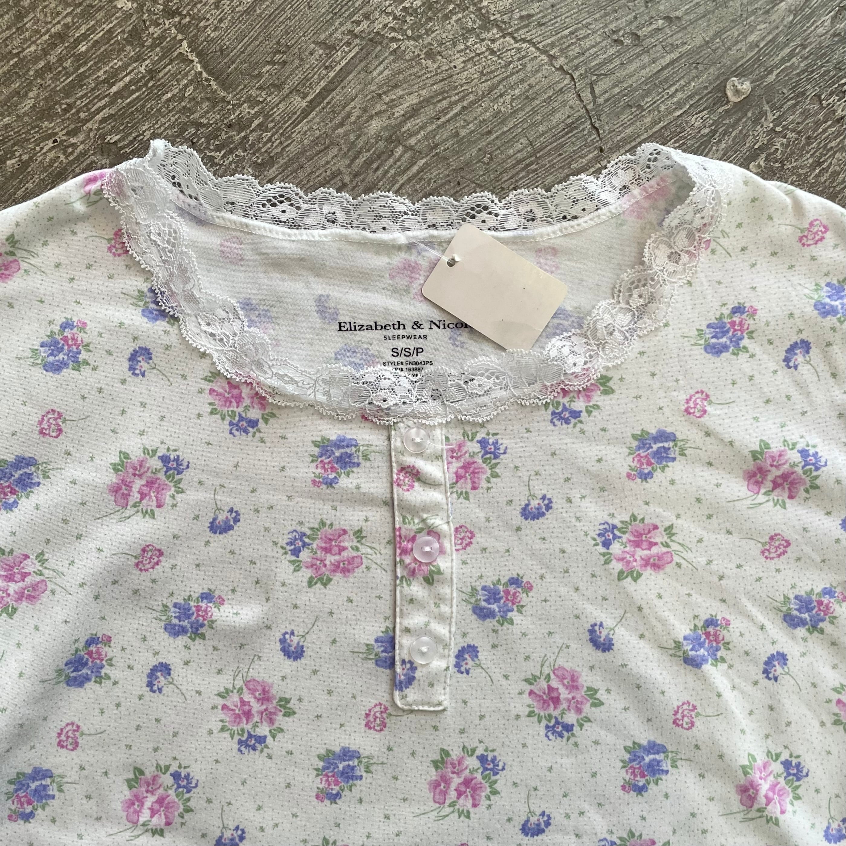 ヘンリーネック風の襟にレースがあしらわれたデザインが可愛い、今シーズン人気の花柄トップスです♡