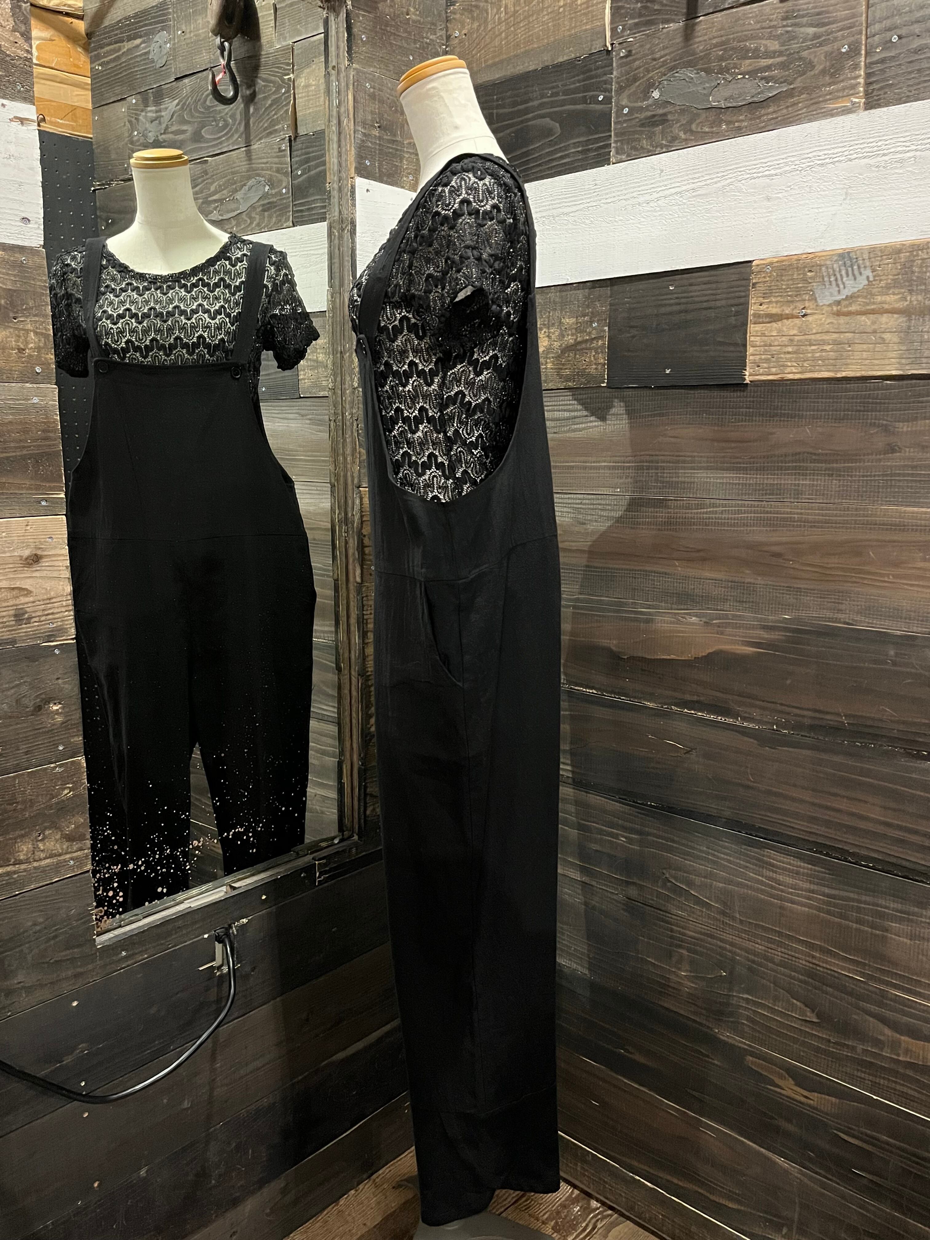 シンプルで色んな合わせが楽しめそうな黒のオーバーオールです