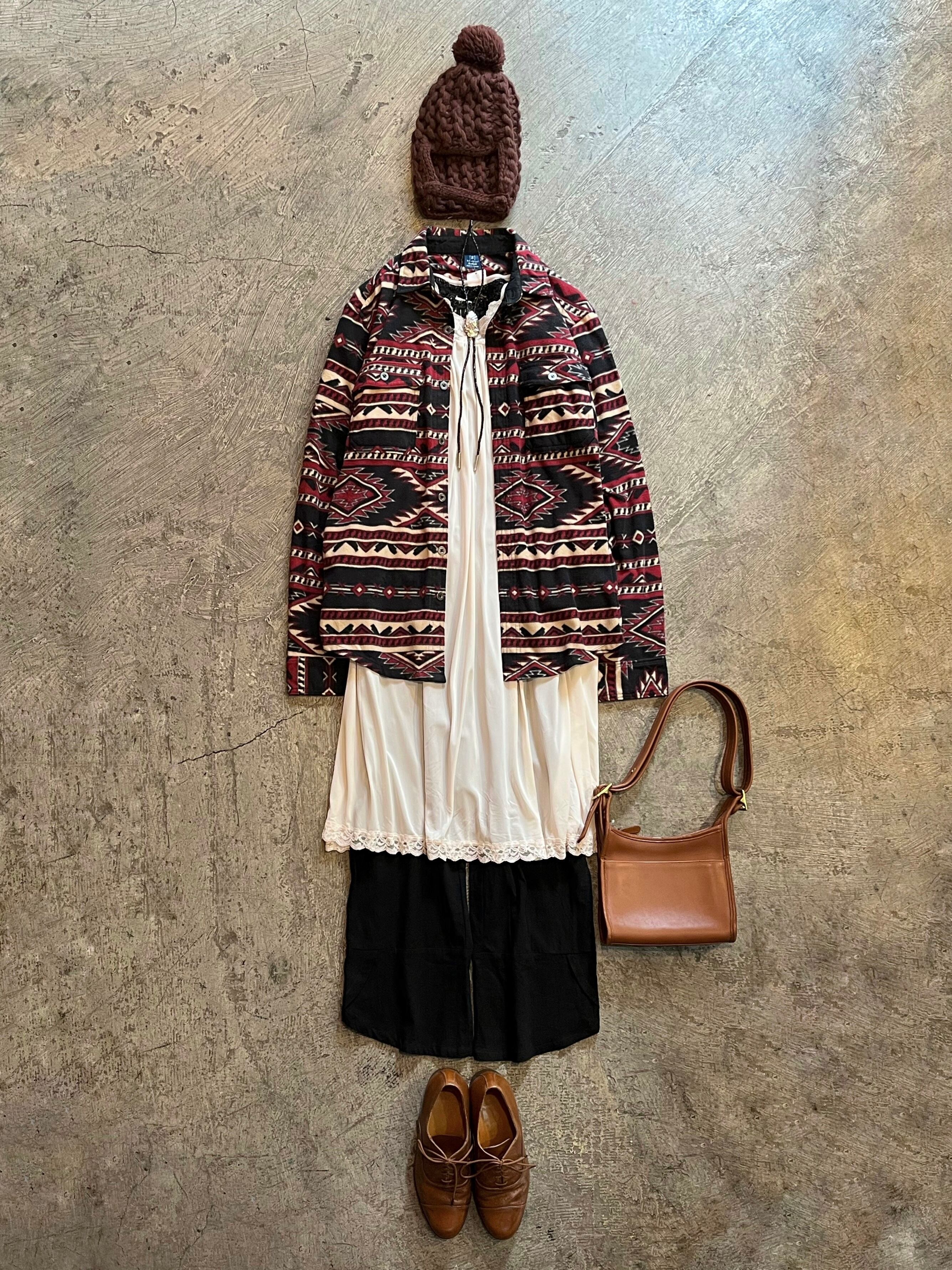 黒ベースの落ち着いたカラーのネイティブ柄が可愛いフリースシャツです!