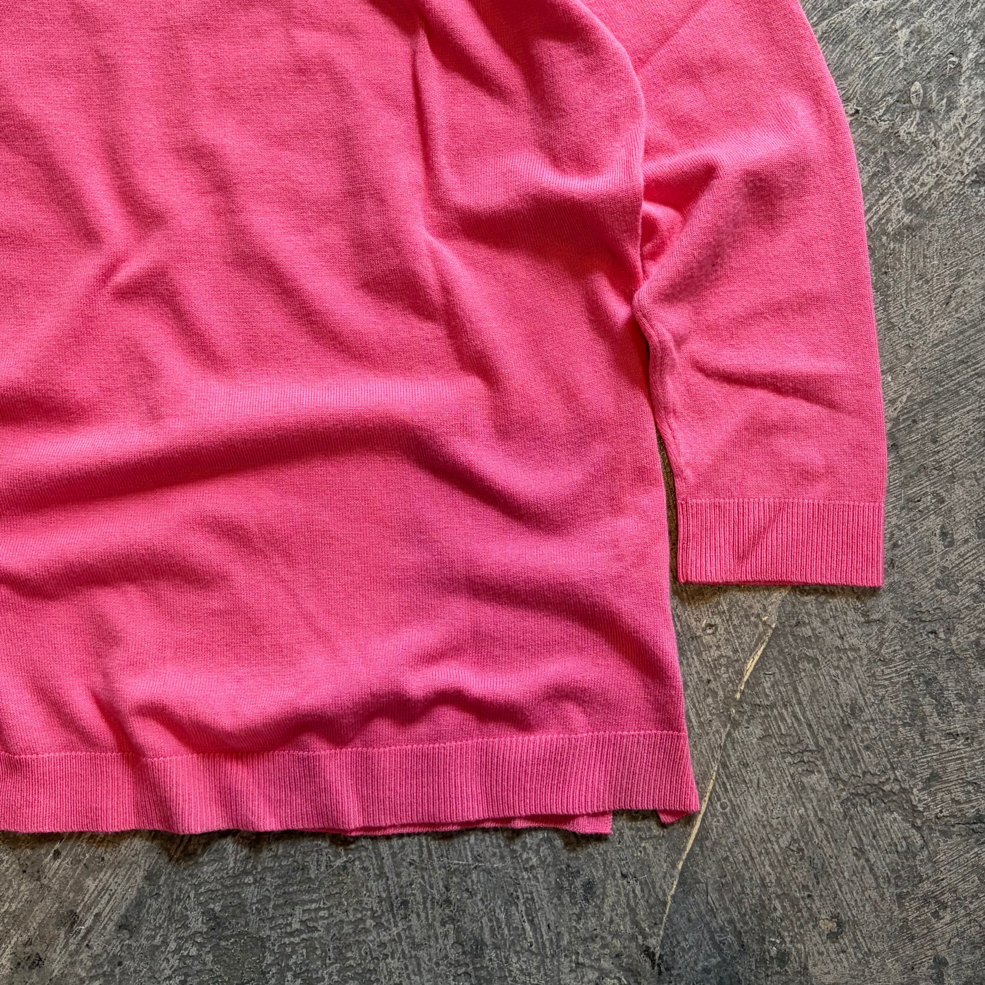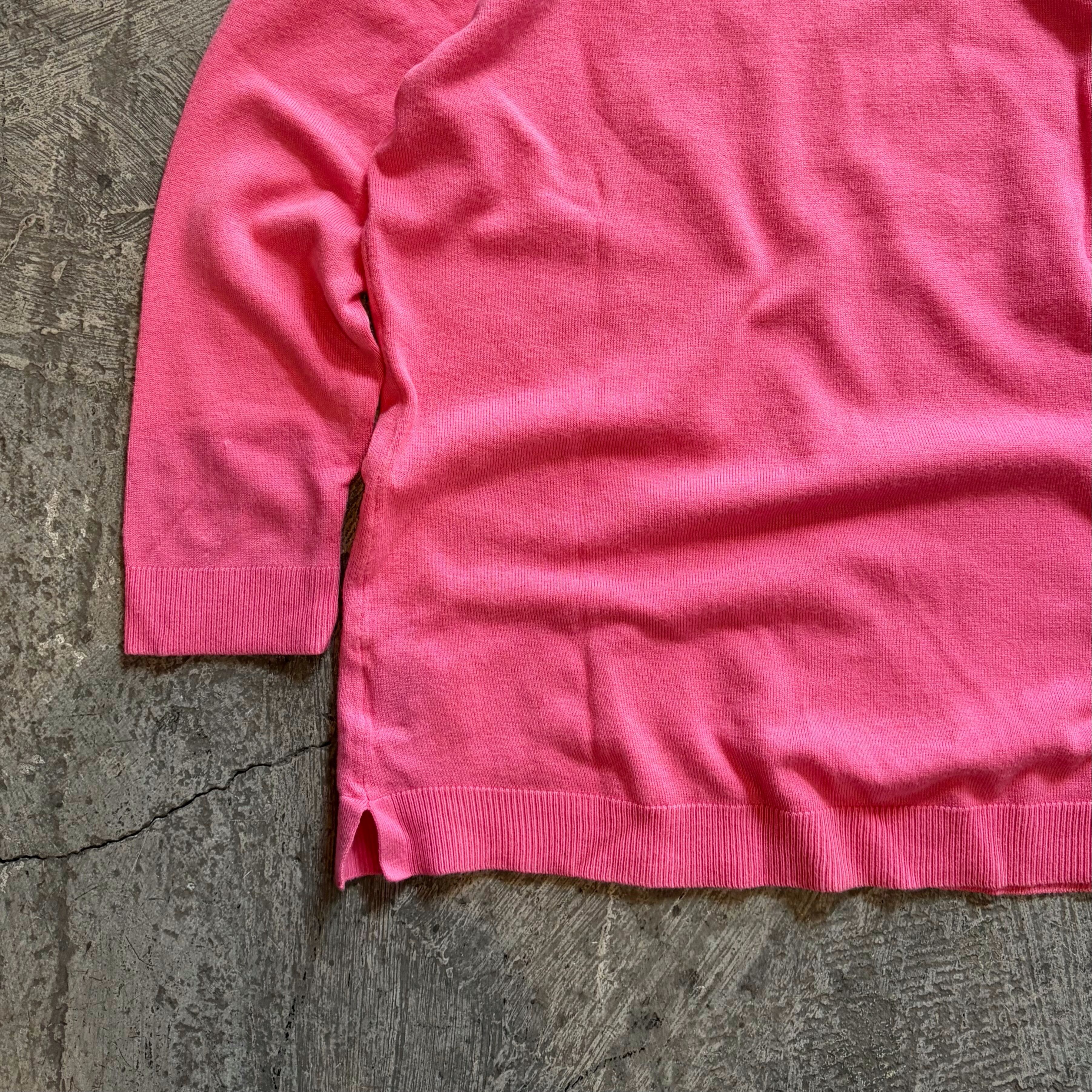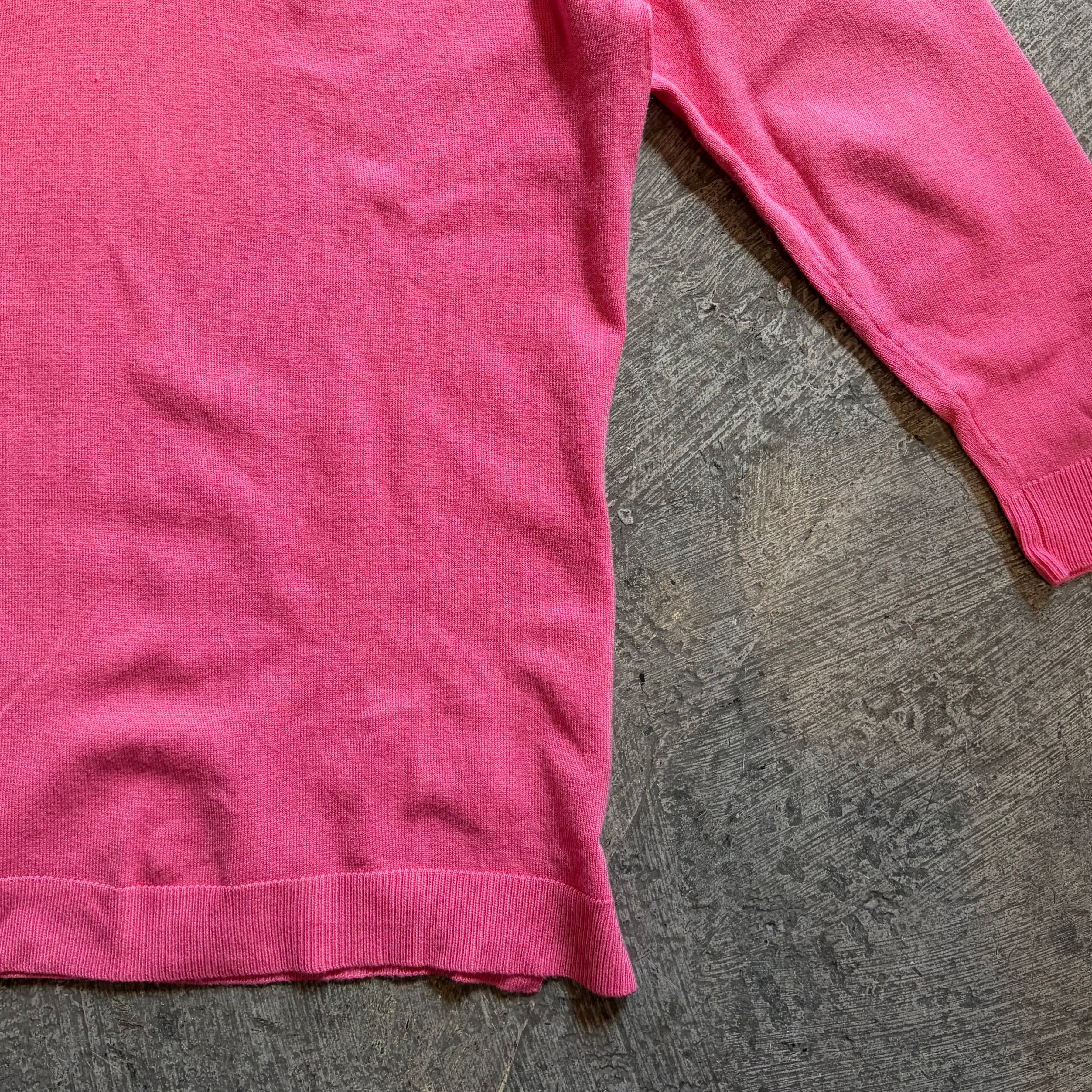 春らしいピンクが可愛い薄手のニットトップスです