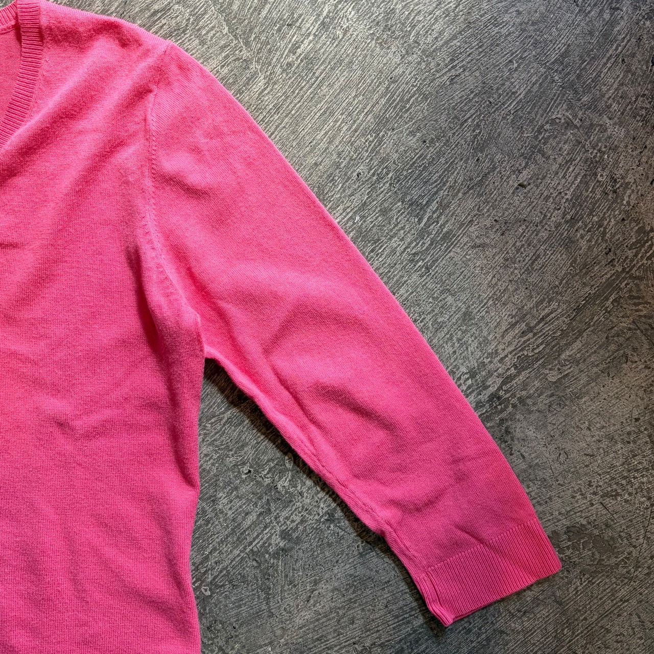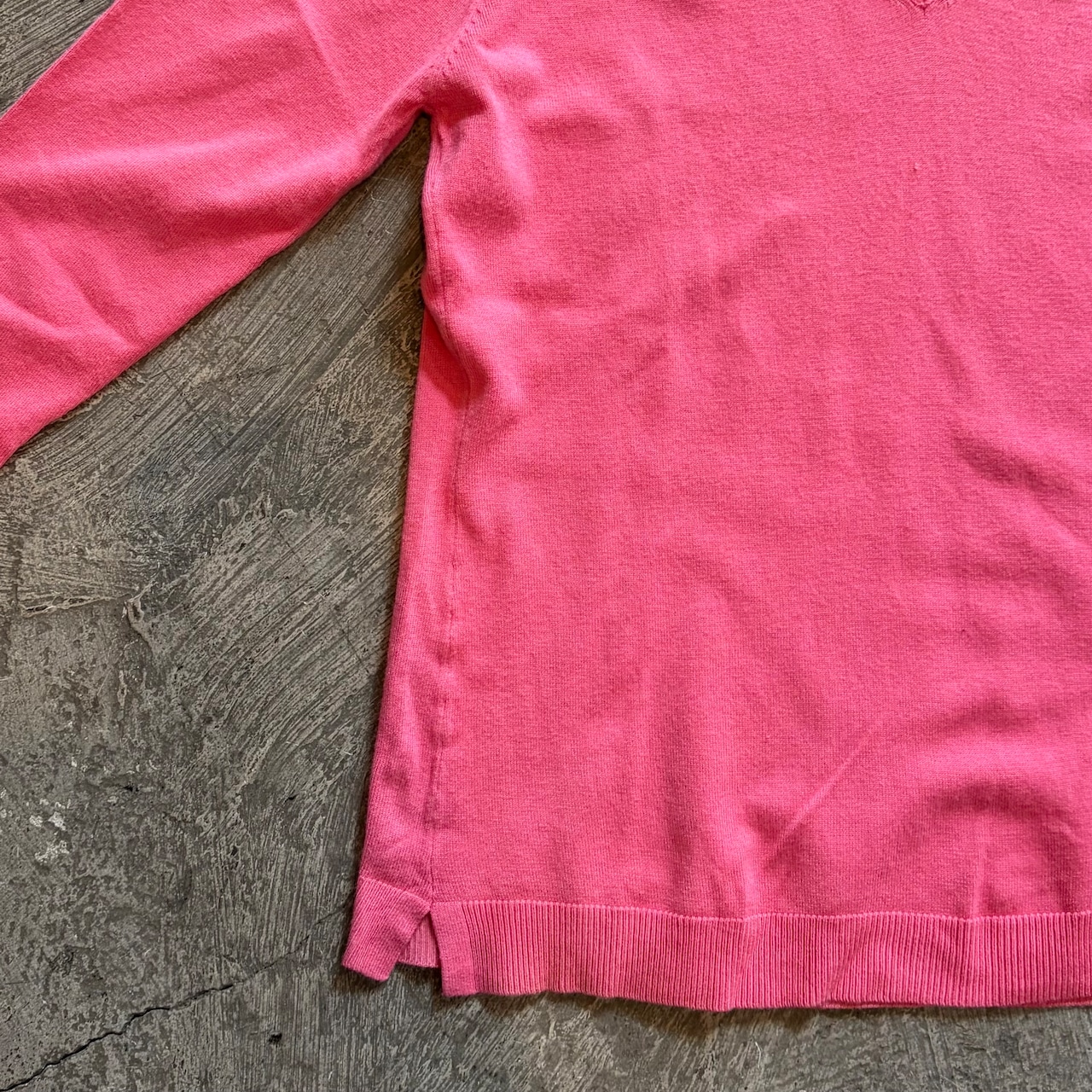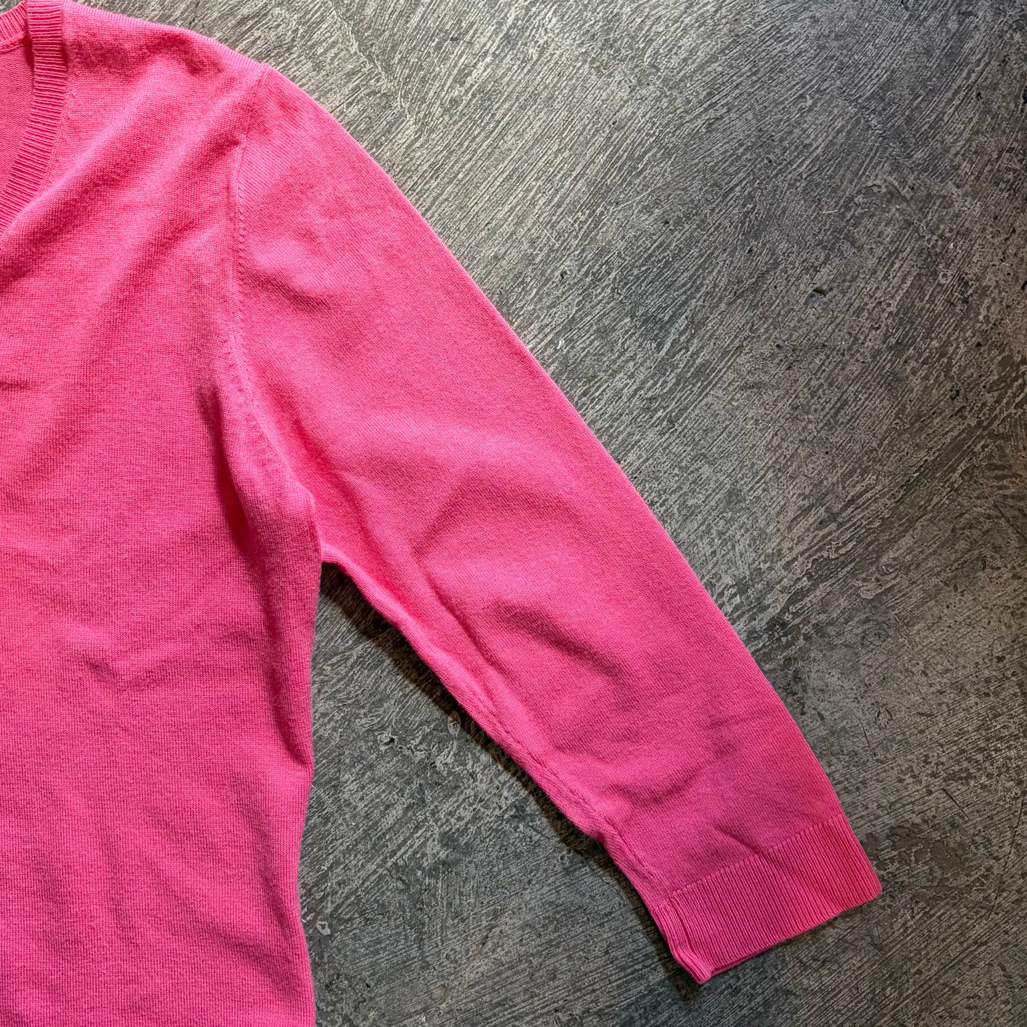 春らしいピンクが可愛い薄手のニットトップスです